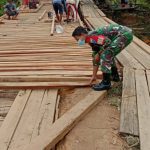 Tanjung Harapan – Bintara Pembina Desa (Babinsa) Koramil 1206-10/Selimbau Serda Jerry melaksanakan kegiatan gotong royong membangun jembatan, selain Babinsa dan masyarakat, tokoh
