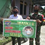 Jongkong – Terlihat aksi Babinsa 1206-09/Jongkong Sertu Sumadi membagikan masker kepada Warga Upaya dalam memutuskan mata rantai penyebaran COVID-19 dan memberikan himbauan
