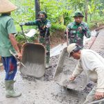 Lamongan – Anggota Satgas TNI Manunggal Membangun Desa (TMMD) Reg 109 Tahun Anggaran 2020 yang dilaksanakan di Desa Tebluru, Kecamatan Solokuro, Kabupaten