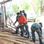 Lamongan – Salah satu anggota Satgas TMMD Reguler Ke-109, Kodim 0812/Lamongan terlihat mahir menggergaji kayu dalam program pembangunan Rumah Tidak Layak Huni