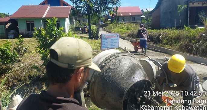 Konfirmasi Pembangunan Kepala Desa Bandung Jaya, Suwandi, membenarkan bahwa pembangunan jalan rabat beton dan pemasangan SPAL (Saluran Pembuangan Limbah) telah dimulai.