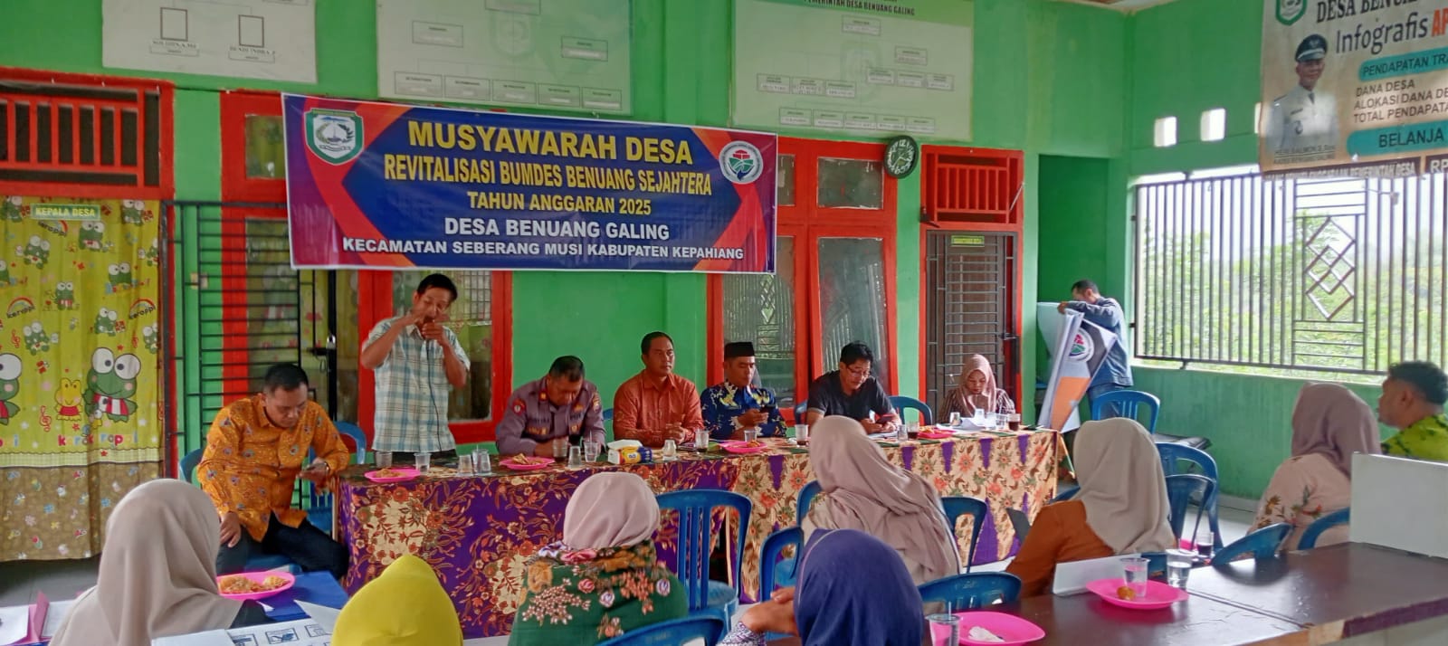 Pra Pelaksanaan APBDes tahun anggaran 2025 Desa Benuang Galing Kecamatan Seberang Musi Kabupaten Kepahiang menetapkan rencana kegiatan pembangunan serta program lainnya diantaranya pembangunan infrastruktur jalan rabat beton, pengerjaan sumur bor dan mendukung program asta cita Presiden Republik Indonesia terkait penanaman bibit jagung, giat musyawarah dilaksanakan di kantor Desa Benuang Galing, pada Kamis (24/4/2025).