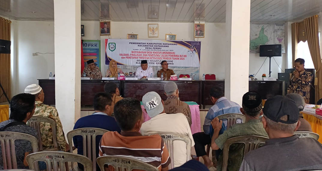Pemerintah Desa (Pemdes) Permu Kecamatan Kepahiang Kabupaten Kepahiang, melaksanakan kegiatan Musyawarah Desa Khusus Validasi dan Penetapan ( KPM) Langsung Tunai Dana Desa atau BLT-DD tahun 2025.