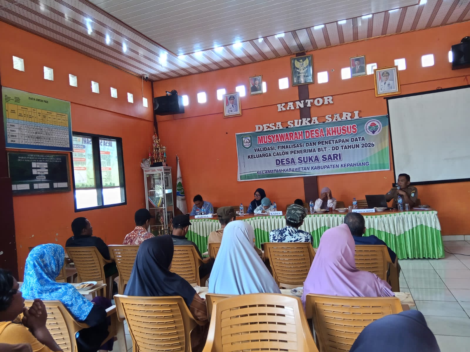 Pemdes Suka Sari Gelar Musdes Khusus Finalisasi, Validasi dan Penetapan Keluarga Calon Penerima BLT Tahun 2026