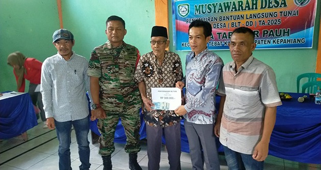 Berandang.com- Kepahiang. Pemerintahan desa Taba Air Pauh Kecamatan Tebat Karai kabupaten Kepahiang menyalurkan Bantuan Langsung Tunai Dana Desa (BKT DD) tahap pertama tahun 2025. Acara penyaluran BLT ini di buka oleh sekretaris Camat Tebat Karai, Joni Rebel yang bertempat di gedung serbaguna desa Taba Air Pauh. Jumat (25/04/2025)