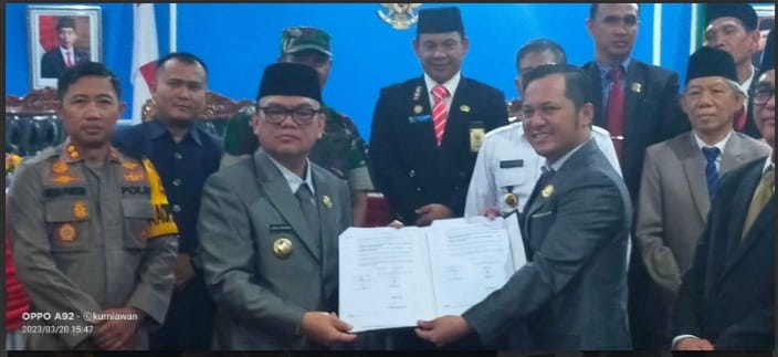 Setelah melalui proses dan tahapan-tahapan yang telah dilalui sesuai dengan dengan ketentuan dan peraturan perundang-undangan yang berlaku, secara bersama-sama telah kita saksikan penanda tanganan keputusan bersama atas Raperda yang diajukan oleh pihak eksekutif beberapa waktu yang lalu untuk kemudian akan ditetapkan menjadi Peraturan Daerah,” ucap Bupati Empat Lawang Joncik Muhammad.
