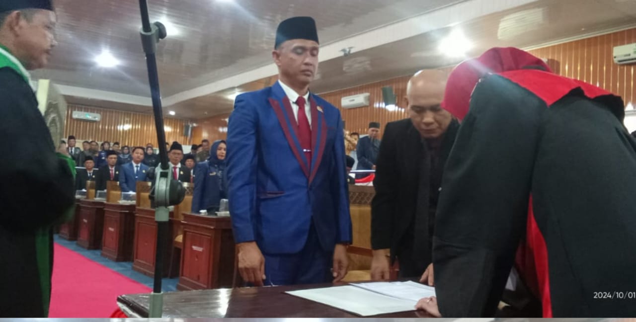 Berandang.com- Pelantikan tersebut dilaksanakan di Ruang Paripurna Gedung DPRD Empat Lawang. Prosesi pengambilan sumpah dipimpin oleh Ketua Pengadilan Negeri Lahat, Melissa, SH., MH, dan dihadiri oleh seluruh anggota DPRD, unsur FKPD, OPD, serta tamu undangan lainnya. Selasa (01/10/2024)