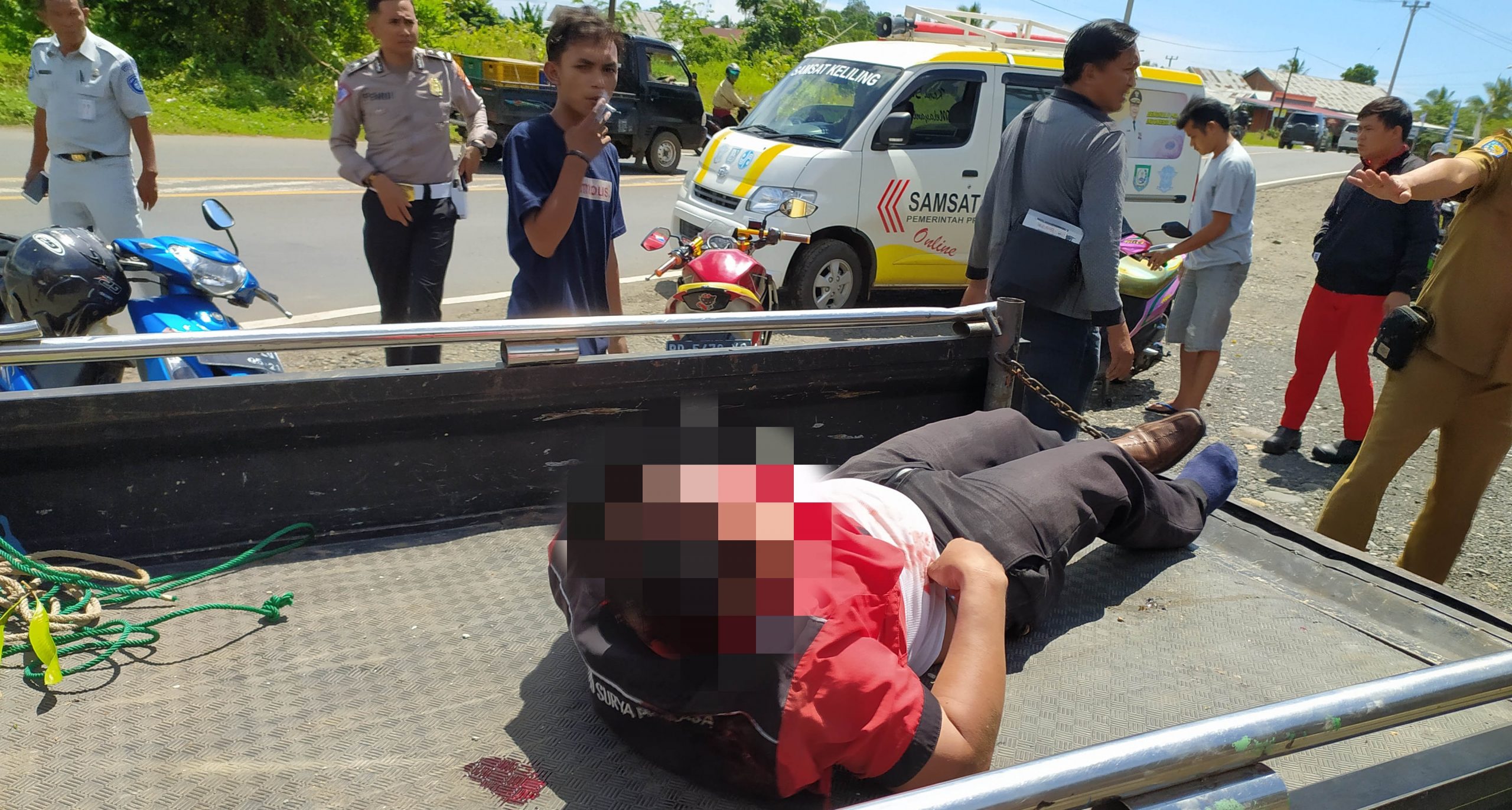 Warga yang sedang membayar pajak kendaraan yang berada di Samsat langsung berbondong-bondong menolong korban.