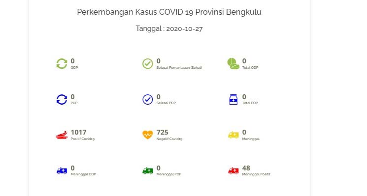 Berandang.com- Pemerintah Provinsi Bengkulu, melalui dinas kesehatan Provinsi merilis, hingga selasa (27/10/2020) ada 1.017 warga Bengkulu terpapar Covid-19.