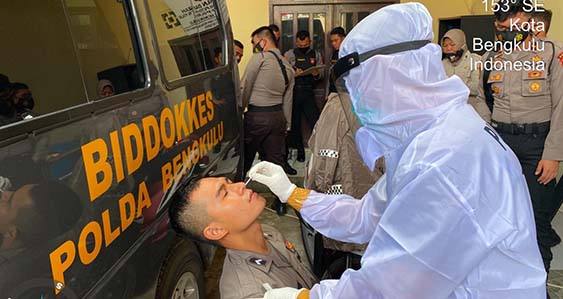 Kabid Dokkes Polda Bengkulu Kombes Pol dr. G.A.A. Diah Yamini D, Sp. THT-KL melalui IPDA Tonga Ansyah, S.KM menjelaskan Kegiatan ini bertujuan untuk memastikan status penularan Covid 19 di Polda Bengkulu mengingat tingginya risiko tertular Covid-19 bagi anggota Polri akibat beban tugas yang diemban.