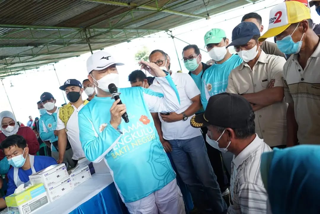 “Hari ini KAGAMA gelar vaksinasi untuk seluruh masyarakat Sengkuang, jadi jangan ragu untuk vaksin. Hal ini guna melindungi diri kita dari virus corona,” ujar Rohidin yang juga merupakan Gubernur Bengkulu ini usai meninjau vaksinasi COVID-19.