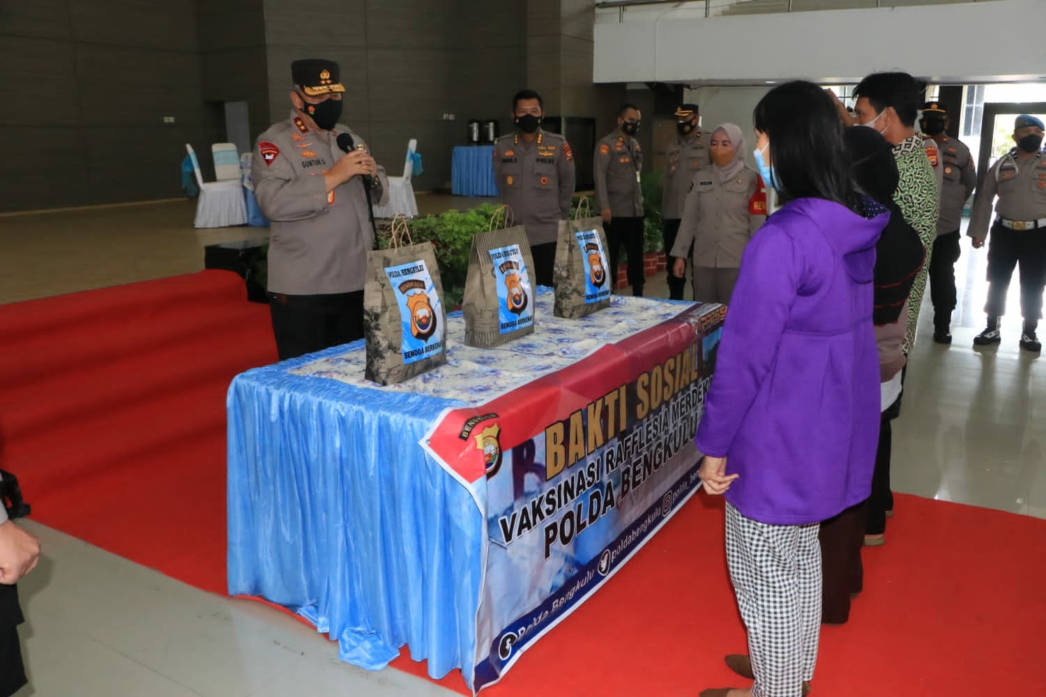 Serbuan vaksinasi massal juga digelar secara serentak Polda Bengkulu dan Polres jajaran hari ini dengan menargetkan 10.000 dosis vaksin.
