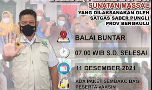 Selain itu, polda Bengkulu terus mendorong agar capaian vaksinasi bisa tercapai. Sabtu kemarin, Polda Bengkulu menggelar pelaksanaan serbuan vaksinasi covid-19 di depan Gedung Balai Buntar Kota Bengkulu.
