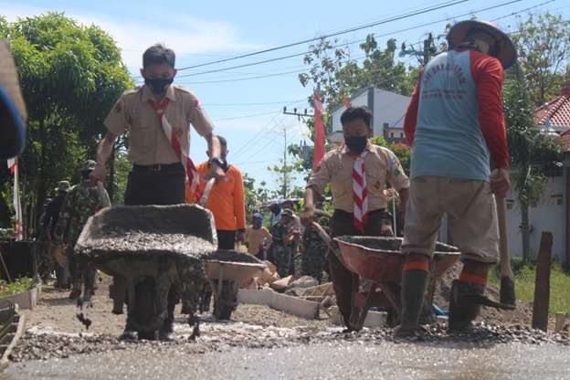 Keterlibatan anggota Pramuka Kwarcab Pati ini bukan paksaan namun kesadaran yang tinggi yang tumbuh untuk ikut mendukung Program TMMD. Sejumlah anggota Pramuka ikut membantu anggota TNI dan masyarakat dalam pengecoran jalan dengan ikut mendorong angkong berisikan adonan cor.