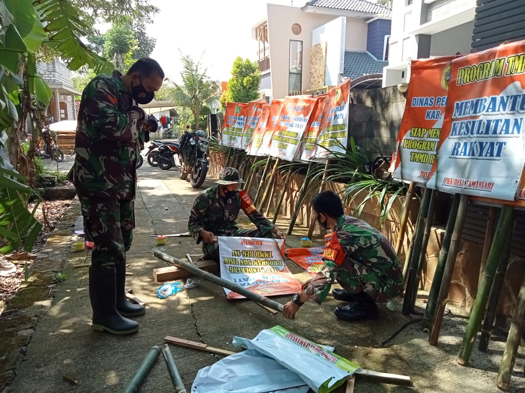 PATI – Guna menunjang pelaksanaan program TMMD ke-111 Kodim 0718/Pati di Desa Tamansari, Kecamatan Jaken, Kabupaten Pati, personel Kodim Pati yang merupakan anggota Satgas TMMD salah satunya Serda Warso, mulai memasang banner informasi.