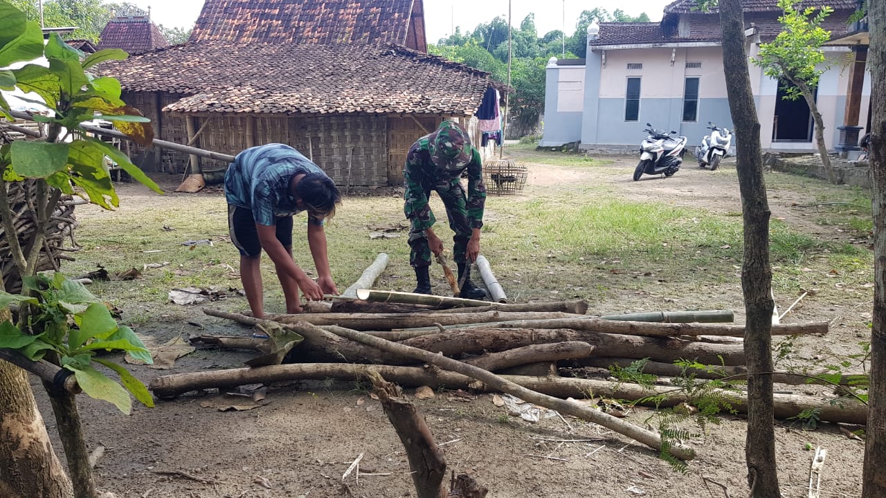 “Saya membantu mas Sutanto membelah bambu saat istirahat bekerja, karena mas Sutanto juga ikut membantu pekerjaan RTLH milik tetangganya. Bambu ini akan digunakan untuk pagar kandang kambing mengganti pagar yang sudah rusak karena ditanduk kambing,” ucap Sertu Sumarno.