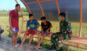 Pati – TNI Manunggal Membangun Desa (TMMD) Reguler Ke-111 TA.2021 Kodim 0718/Pati. Anggota Satgas TMMD bersama warga Desa yang masih melanjutkan pencapaian 75 % pengerjaan pembuatan Tugu Prasasti TMMD Reguler Ke-111 di Desa Tamansari, Kecamatan Jaken, Kabupaten Pati.
