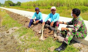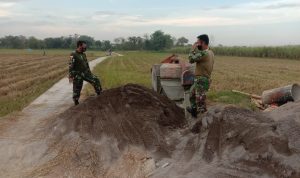 Pati – TNI Manunggal Membangun Desa (TMMD) Reguler Ke-111 TA.2021 Kodim 0718/Pati. Anggota Satgas TMMD bersama warga Desa yang masih melanjutkan pencapaian 75 % pengerjaan pembuatan Tugu Prasasti TMMD Reguler Ke-111 di Desa Tamansari, Kecamatan Jaken, Kabupaten Pati.
