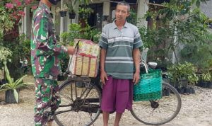 Anggota Satgas TMMD Bersama Warga Desa Yang Masih Melanjutkan Pencapaian 75 % Pengerjaan Pembuatan Tugu Prasasti