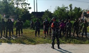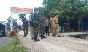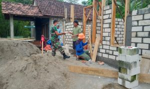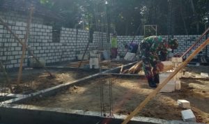 Pati – TNI Manunggal Membangun Desa (TMMD) Reguler Ke-111 TA.2021 Kodim 0718/Pati. Anggota Satgas TMMD bersama warga Desa yang masih melanjutkan pencapaian 75 % pengerjaan pembuatan Tugu Prasasti TMMD Reguler Ke-111 di Desa Tamansari, Kecamatan Jaken, Kabupaten Pati.