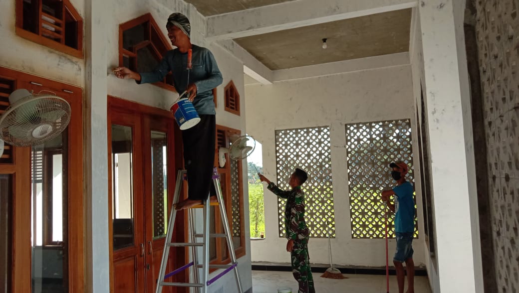Serda Sudadi mengatakan akhir waktu pelaksanaan TMMD Reguler 111 TA.2021, anggota Satgas TMMD dibantu warga masyarakat desa, sudah menyelesaikan pengecatan dinding dan kusen mushola.