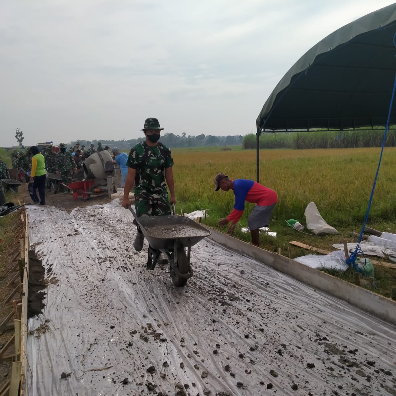 Pati- Program TNI Manunggal Membangun Desa (TMMD) Reg- 111 Kodim 0718/Pati Tahun Anggaran 2021 di Desa Tamansari Kecamatan Jaken Kabupaten Pati ini masih dalam rangkaian berbagai macam program pembangunan, termasuk betonisasi jalan desa.Minggu,(20/06/2021).