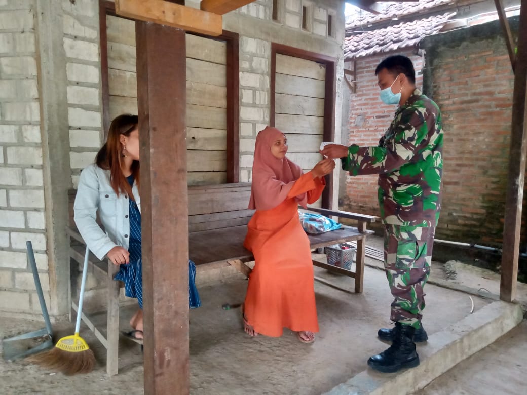 Salah satu anggota satgas yang terlihat membagikan masker adalah Serda Subakir. Dengan mendatangi rumah warga sambil memberikan sosialisasi bahaya covid 19 dan pentingnya memakai masker.