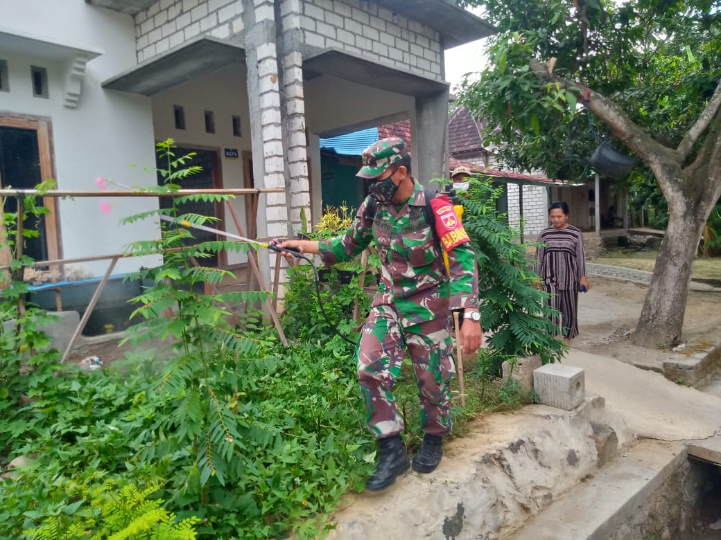 Sebanyak 12 rumah telah disemprot menggunakan cairan disinfektan oleh TNI dan panitia TMMD desa Tamansari.