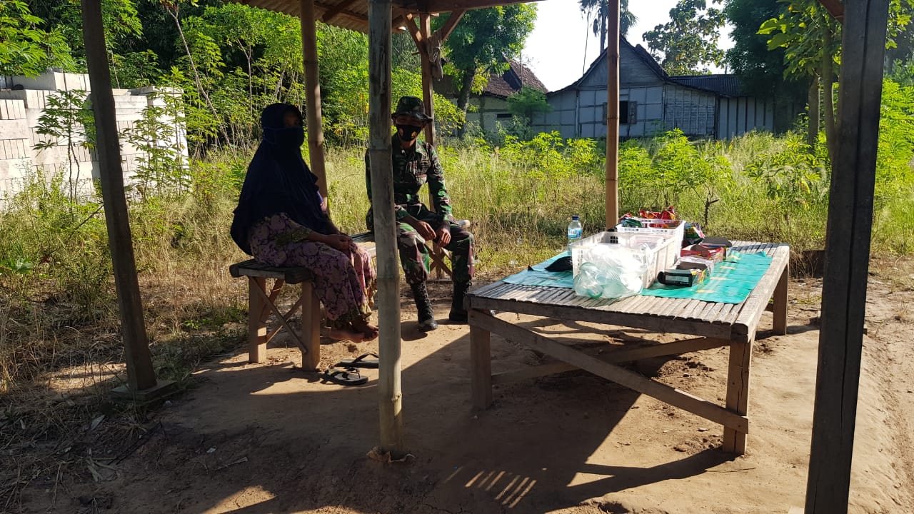 Serda Warso disela istirahatnya menghampiri Sarti (75) penjual snack disekitar lokasi pekerjaan, sambil ngobrol ia mencicipi makanan yang telah disiapkan diwarungnya. Meskipun Sarti sudah berusia lanjut namun ia tetap dengan semangatnya berjualan menjemput rizki, Selasa (15/06/2021).
