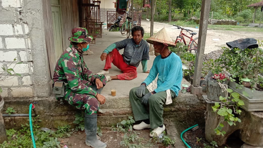 Pati – TNI Manunggal Membangun Desa (TMMD) Reguler ke-111 TA.2021 Kodim 0718/Pati. Anggota satgas TMMD selalu lakukan Komunikasi Sosial (Komsos) dengan masyarakat Desa Tamansari, Kecamatan Jaken, Kabupaten Pati.