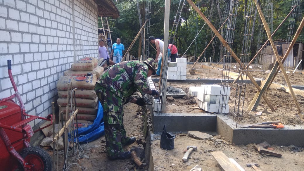 Danramil 16/Jaken, Kapten Kav Budi Karyadi, S.E. mengatakan, beberapa proses telah dilalui, saat ini sudah memasuki proses pemasangan batako pada dinding RTLH menjadi bagian terberat dalam setiap pengerjaan konstruksi.