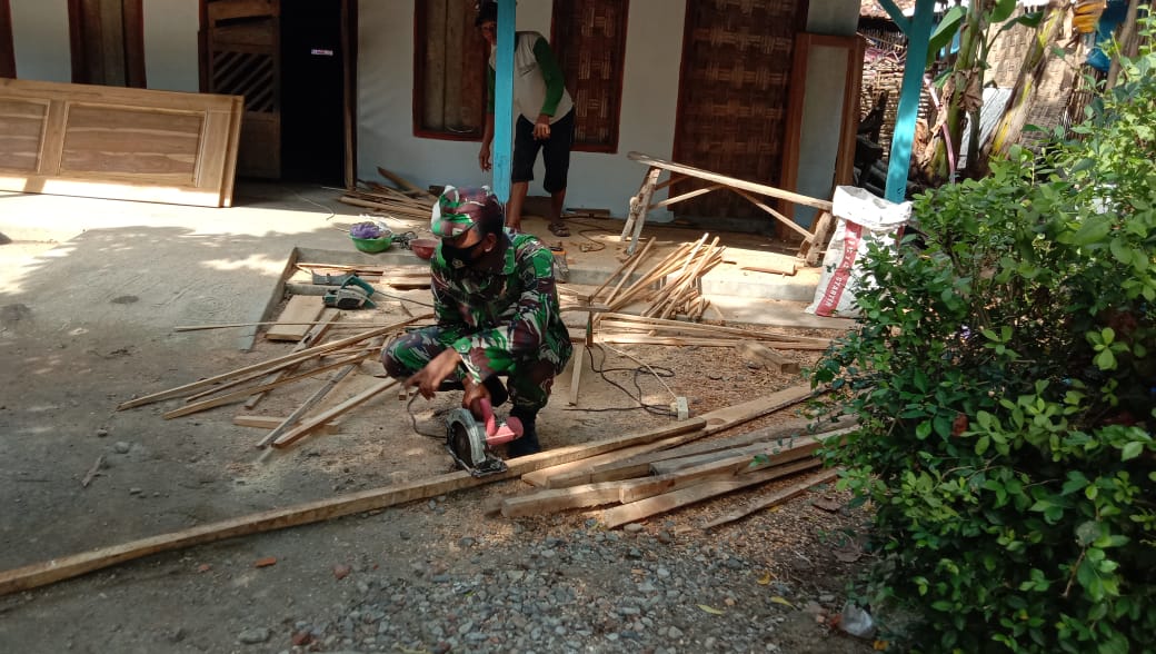 “Saat ini pekerjaan fisik rumah bapak Syukur warga Dusun Pandahan Rt.04 Rw.02, Desa Tamansari, Kecamatan Jaken hasilnya sudah mulai terlihat. Tinggal pengerjaan pemasangan daun jendela dan pintu,” ujar Serka Sugino.