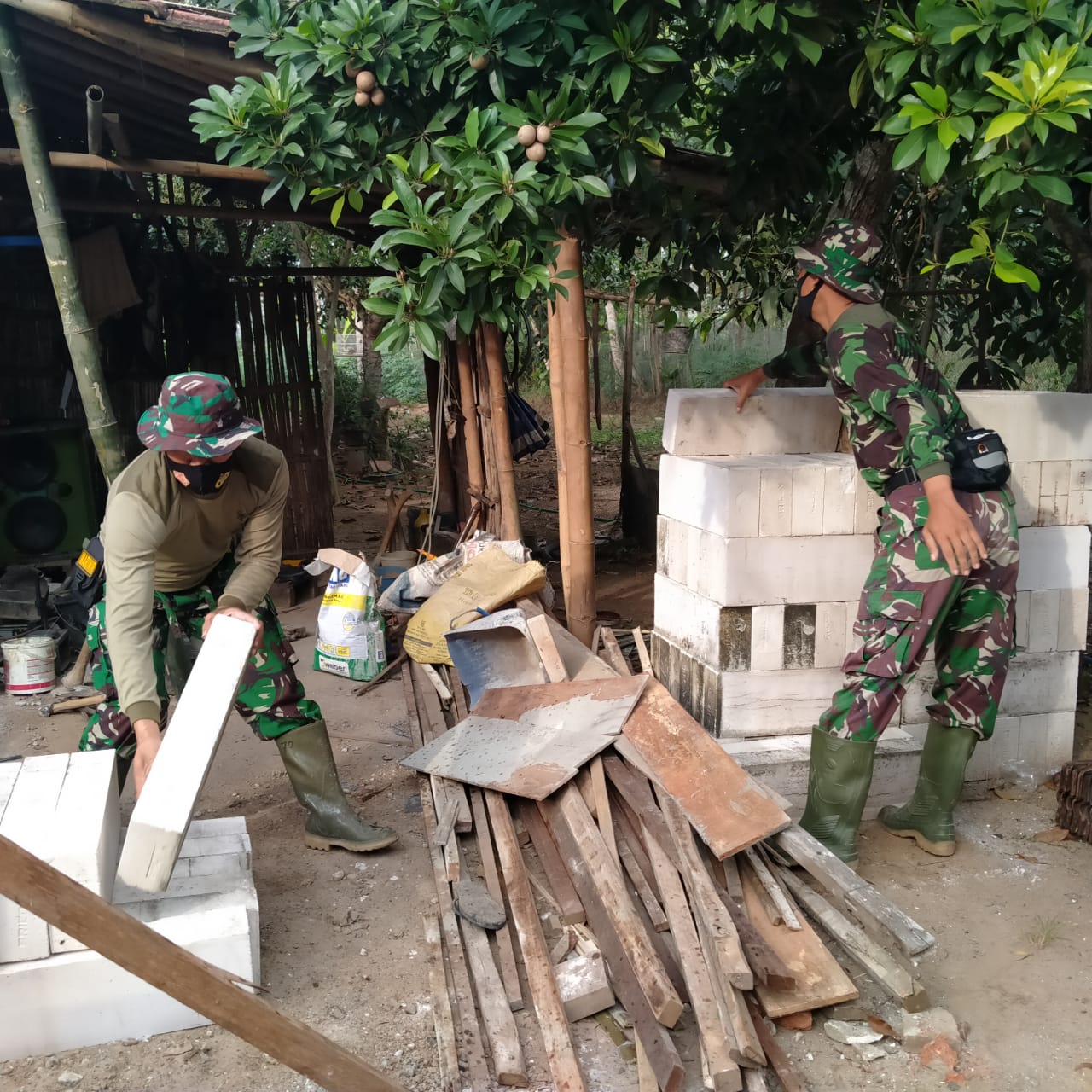 Pati- Pembangunan rumah tidak layak huni untuk warga yang kurang mampu masih terus dikejar penyelesaian pembangunannya, TNI dan warga setiap hari disibukkan dengan kegiatan pembangunan di Desa Tamansari Kecamatan jaken Kabupaten Pati. Kamis,(24/06/2021).