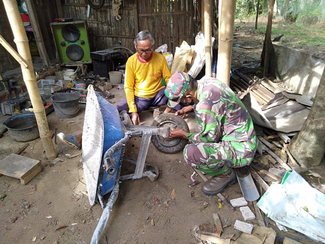 Pati – Sejumlah Arco yang rusak sementara di perbaiki oleh Anggota satgas bersama Warga, Serma Agus Ali anggota satgas TMMD Reguler ke 111 Kodim 0718/Pati, yang sedikit mempunyai pengalaman bengkel membantu memperbaiki Arco yang rusak tersebut.