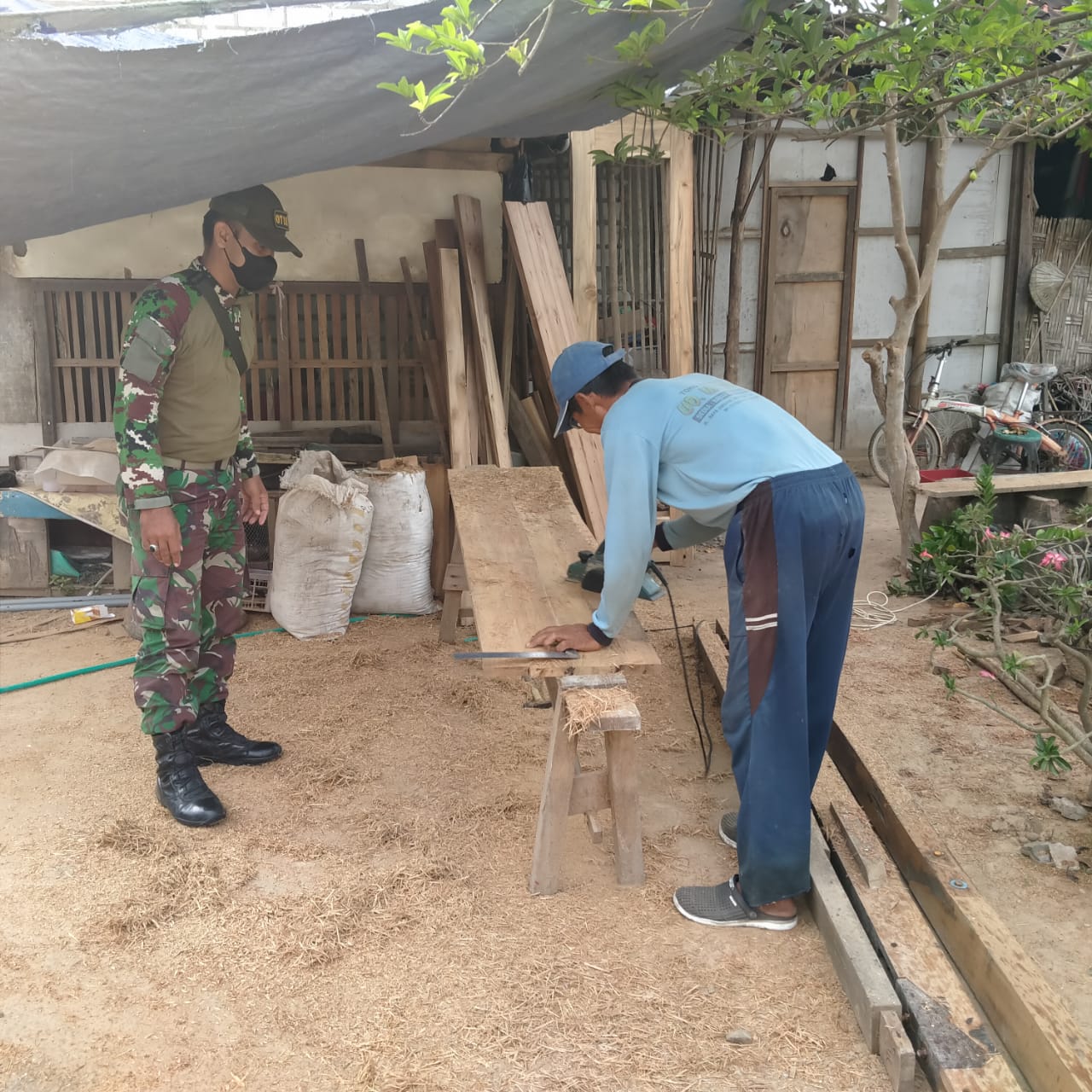 Di rumah Sadik(43) terlihat anggota TNI satuan tugas TMMD masih nampak mengunjungi rumahnya guna memantau pembuatan kusen pintu dan jendela untuk rumah yang menerima program bantuan bedah rumah RTLH.