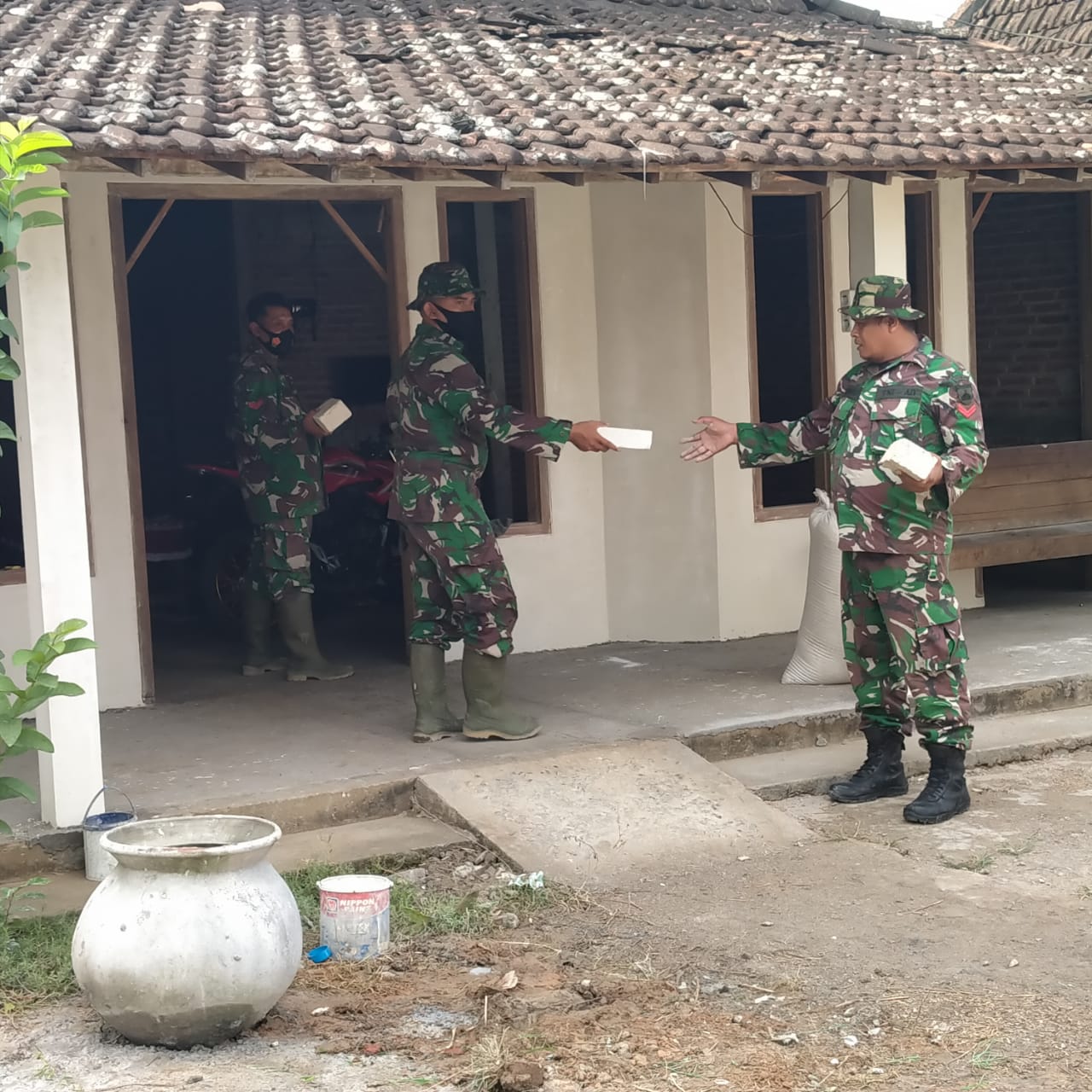 Pati- Masih dalam program TNI Manunggal Membangun Desa (TMMD) Ke 111 Kodim 0718/Pati, yang dilakasanakan di Desa Taman Sari Kecamatan Jaken Kabupaten Pati, anggota satgas TNI tampak sedang sibuk melangsir bata putih dari dalam rumah Nyono(57) keluar untuk dirapikan di halaman.