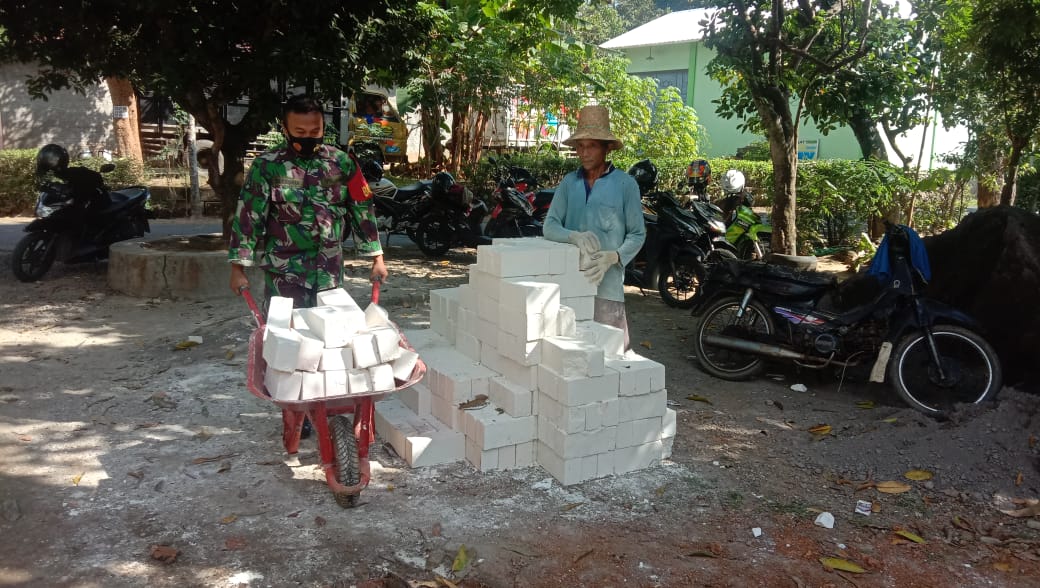 Pati – Sederhana namun kegunaannya sangat luar biasa, itulah yang pantas untuk di julukan gerobak mini dari besi beroda tiga yang selama ini digunakan untuk memperlancar pembangunan fisik TMMD Reguler ke -111 Kodim 0718/Pati. Senin (07/06/21).