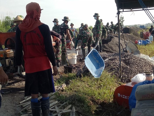 PATI – Di lokasi TMMD Reg ke-111 Kodim 0718/Pati, di Desa Tamansari, Kecamatan Jaken, Kabupaten Pati, tampak semu pihak, baik dari TNI atau pun warga melakukan pengerjaan kegiatan fisik dari pengecoran jalan dan Rumah Tidak Layak Huni (RTLH), semuanya terus di kebut.