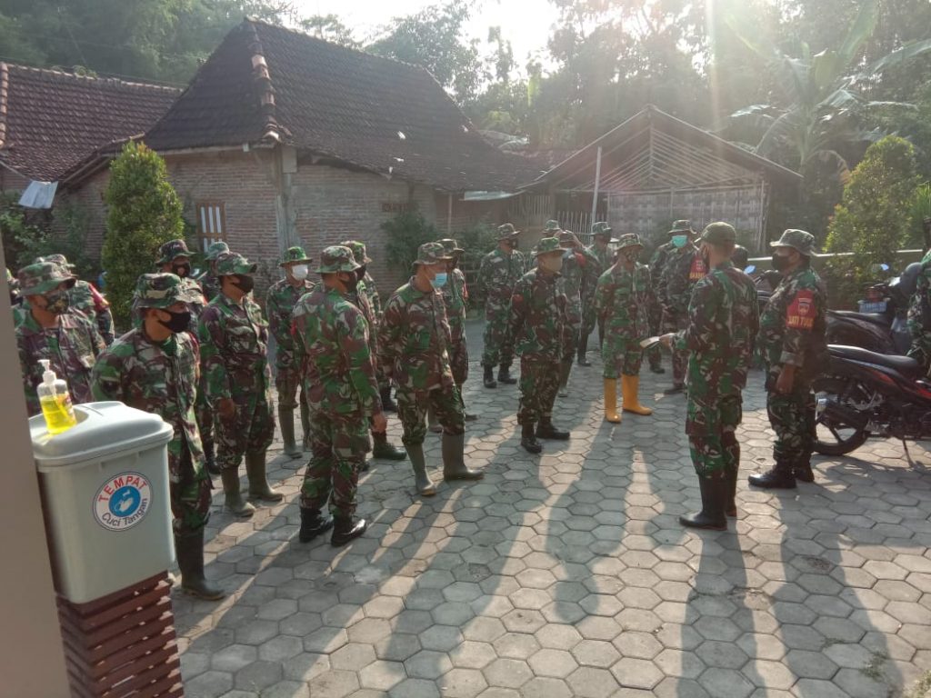 Rutinitas pagi mengawali kegiatan dilakukan tim Satgas TMMD 111 sebelum pembagian kegiatan pembangunan fisik di Lokasi TMMD Desa Tamansari
