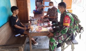 Pati- Terlihat banyak anggota TNI Kodim 0718/Pati yang tergabung dalam Satgas Pra TMMD Ke 111 yang berdiri di halaman Koramil 16/Jaken menunggu diambil pengecekan oleh tertua Satgas di Lapangan, Danramil 16/Jaken.Kamis,(03/06/2021).