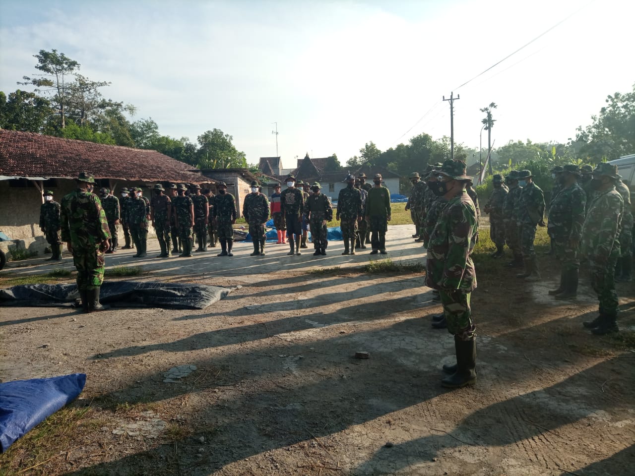 Pati – Bati Bhakti Staf Teritorial Kodim 0718/Pati Serka Imam Aryanto memimpin apel pagi anggota TMMD Reguler ke 111 Kodim 0718/Pati, bertempat didekat lokasi sasaran utama pengerjaan rabat beton Desa Tamansari Kecamatan Jaken Kabupaten Pati, Sabtu (19/6/2021).