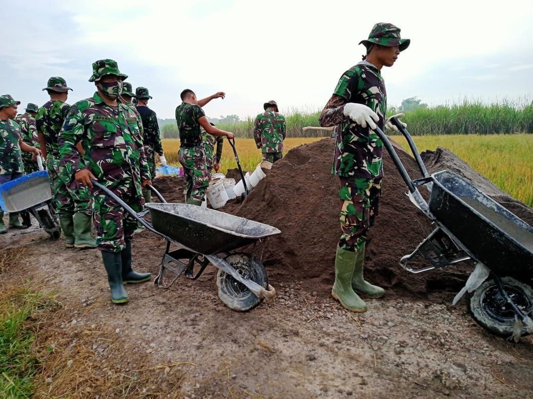 Kegiatan TNI Manunggal Membangun Desa (TMMD) ke 111 Kodim 0718/Pati Ta 2021, anggota satgas bersama warga Desa Tamansari, terus berupaya maksimal untuk menyelesaikan pembangunan jalan rabat beton di Desa Tamansari, Kecamatan Jaken, Kabupaten Pati.