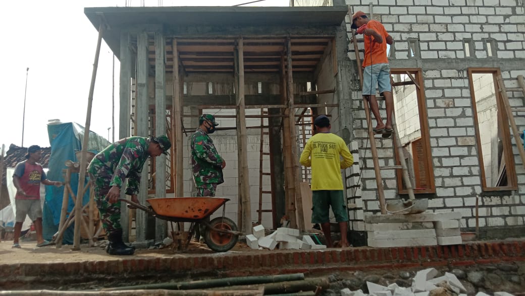 “Teras ini merupakan wajah rumah yang kita bangun, untuk itu tidak boleh ada kesalahan sedikitpun. Sebab sedikit saja kesalahan akan terlihat tidak bagus dan berakibat fatal,” ungkap Serka Suwarto di sela-sela kegiatannya membangun rumah milik Mbah Sapari.