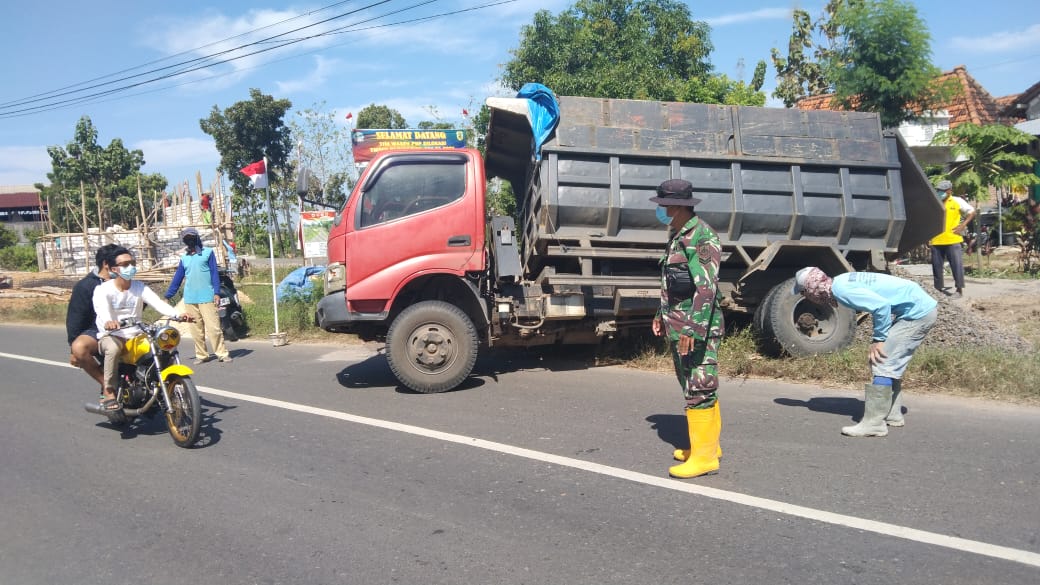Serka Supeno menggilir pengendara mobil maupun motor secara bergantian untuk jalan melewati depan truk yang sedang bongkar pasir, sehingga tidak terjadi tabrakan, Driver Truk Baskoro (36) mengucapkan terima kasih kepada Serka Supeno yang sudah ikut membantu mengatur lalu-lintas jalan hingga bongkar muatan pasirnya dengan aman,”ujar Baskoro.