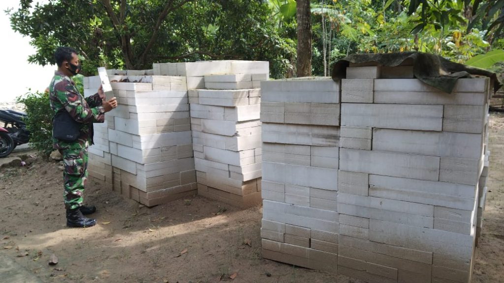 ”Pendampingan pengecekan droping bahan material ini kami lakukan untuk memastikan kiriman material sesuai pesanan sehingga bangunanyang dihasilkan berkwalitas,”Kata Kopda Bowo.