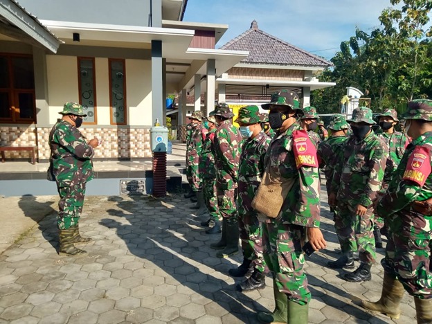 Sebelum pelaksanaan apel Pelda Sunardi memimpin pembacaan doa dengan harapan hari ini cuaca cerah dan tidak ada hal yang menghambat proses pelaksanaan kegiatan hari ini, selanjutnya memberikan pengarahan kepada Prajurit TNI maupun warga terkait apa-apa yang akan dikerjakan hari ini, selain itu juga dalam bekerja harus selalu mengutamakan faktor keamanan, apalagi masih dalam Pandemi Covid-19, tetap disiplin protokol kesehatan.