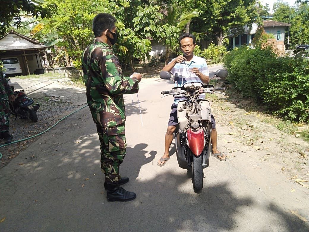 Babinsa Kodim Pati Membagikan Masker Kepada Masyarakat