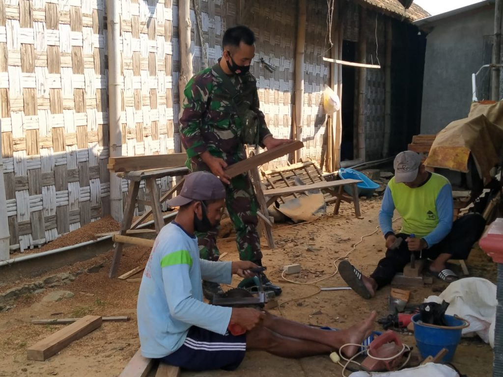 Seperti yang dilakukan saat ini, Babinsa terlihat sedang memantau proses pengerjaan material kayu yang dibuat menjadi kusen pintu dan jendela. Dia memastikan tentang bentuk dan ukuran agar tidak terjadi selisih antara kayu dan struktur bangunan rumah yang akan dibuat.