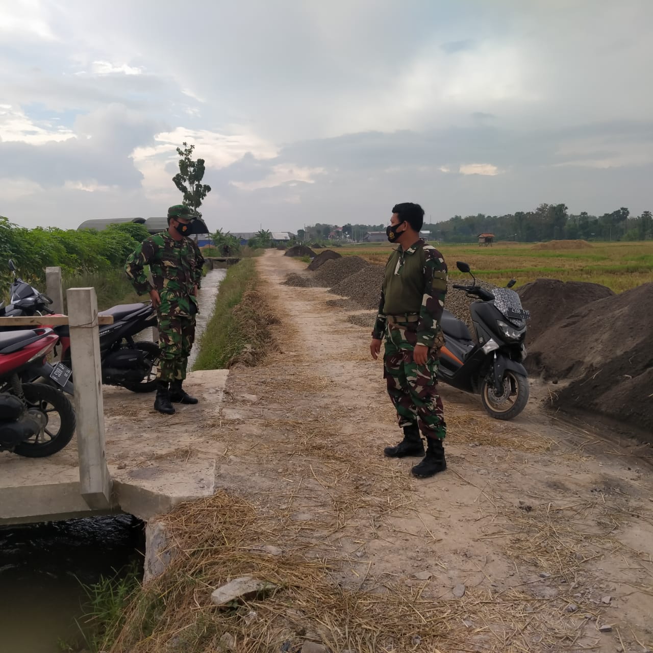 Dalam rangka mendukung kelancaran dalam pengerjaan sasaran TMMD program Betonisasi Jalan, Sertu Jumroni, Babinsa Desa Tamansari melaksanakan pengecekan kesiapan material koral dan pasir yang akan digunakan.