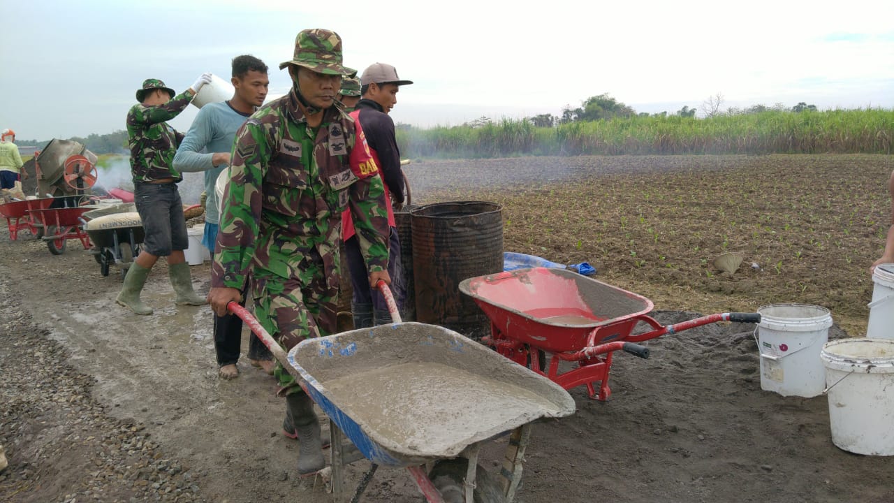 Pati- Ketika berbicara tentang TNI, tidak jarang kita mendengar tentang kedisiplinannya, kegarangannya, kegagahannya, keberaniannya dan lain sebagainya. Kali ini ada hal yang berbeda, mereka terlihat seperti sedang bergelut dengan gerobak sorong dan adukan semen di jalan Desa Tamansari Kecamatan Jaken Kabupaten Pati.Jumat,(18/06/2021).